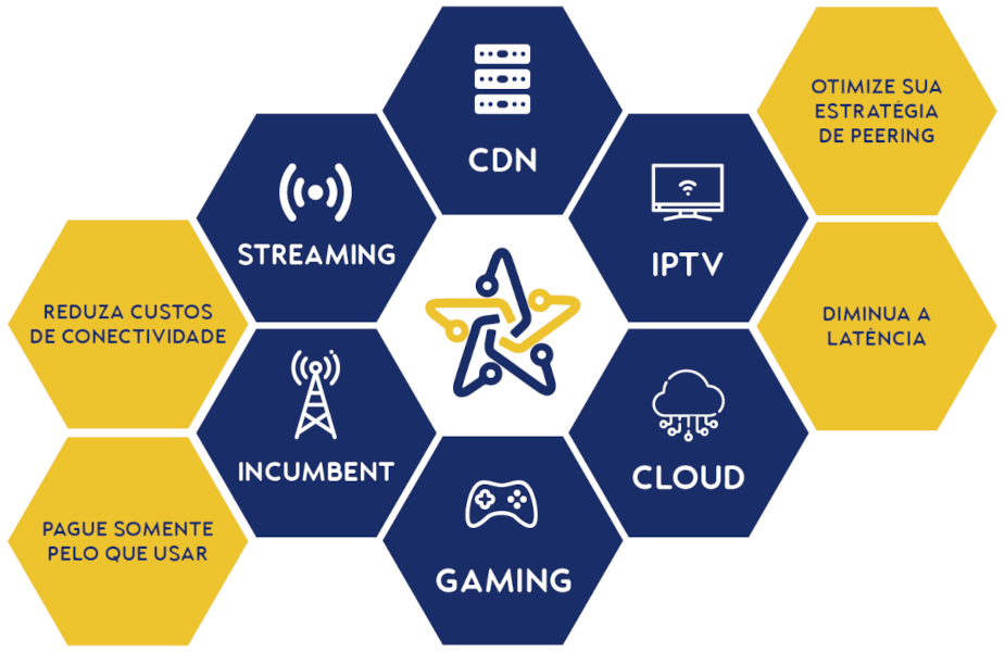 Tenha acesso aos principais conteúdos nacionais e internacionais através de uma única conexão (física ou lógica) para melhorar a experiência do seu cliente, reduzir custos de conectividade e otimizar sua estratégia de peering. Tenha uma alternativa segura para receber tráfego legítimo mesmo em períodos em que sua rede esteja sob ataques maliciosos.
